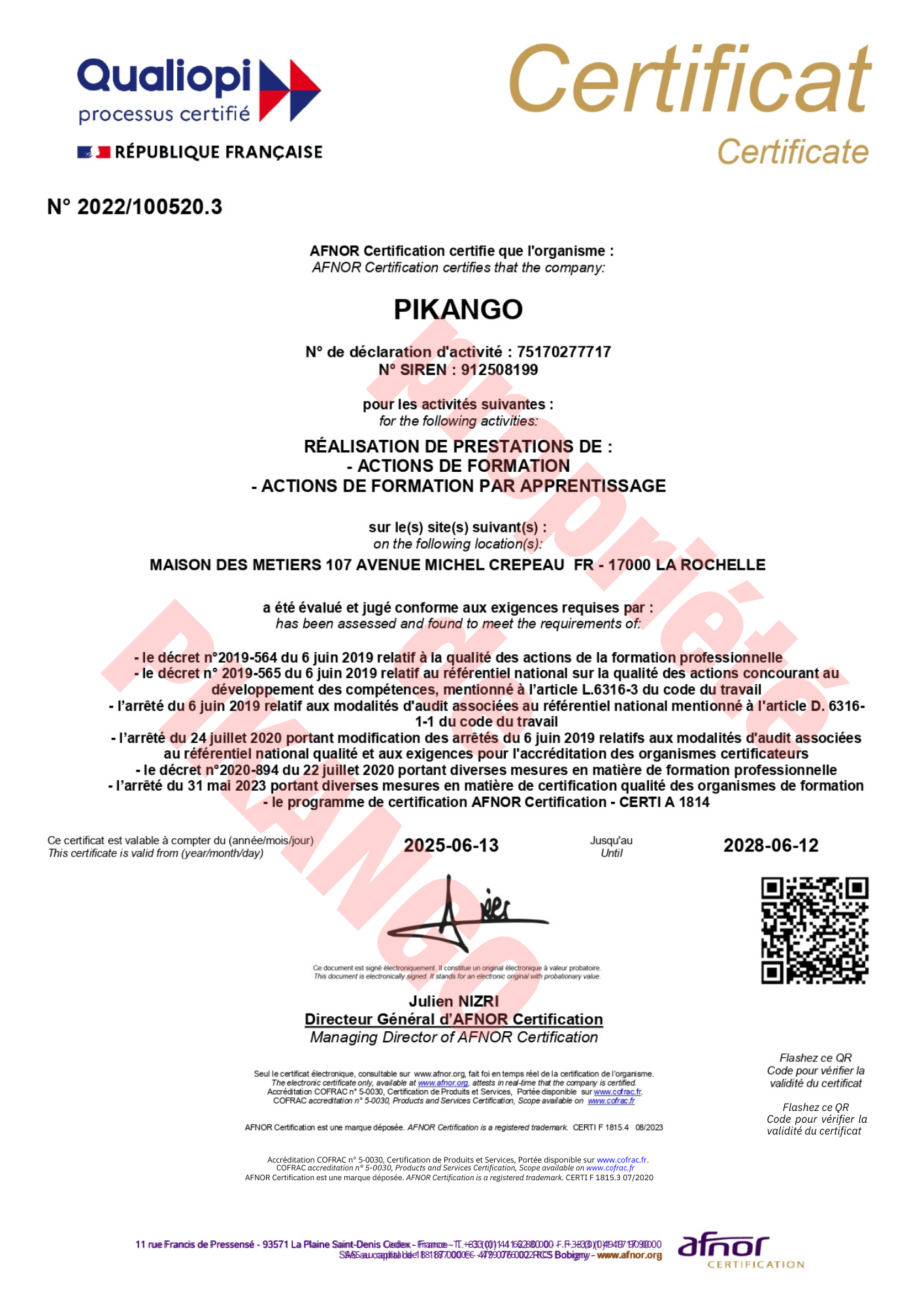 PIKANGO, ce sont des professionnels de la formation expérimentés qui se sont associés pour proposer aux apprenants des parcours de formation leur permettant de développer leur employabilité, leurs savoir-être et leurs savoir-faire.